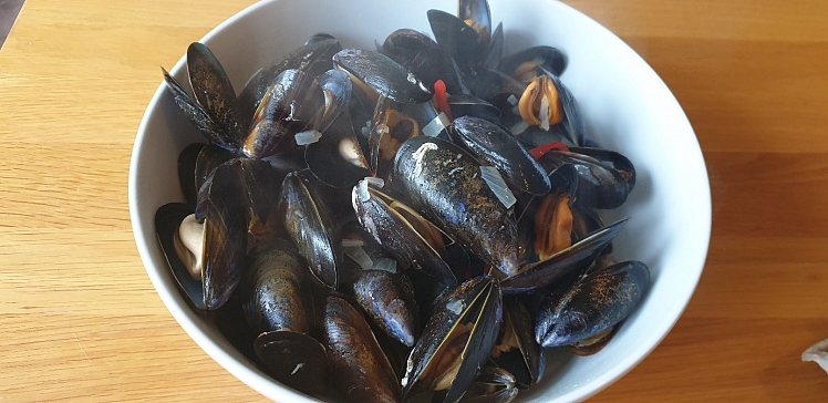 2kg mussels, rinsed, scrubbed and beards removed