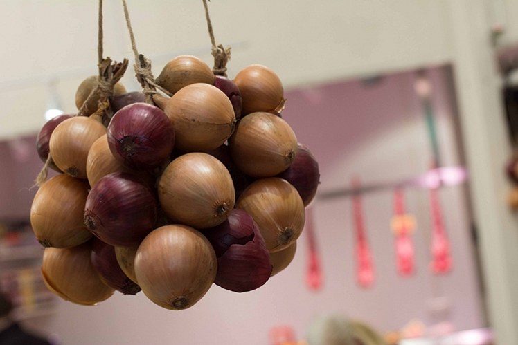 Cut the onions and chilli into short, thin slices and put them into a pan with the bay leaves and oil. Cook gently over a low heat for about 20 minutes.